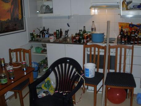 Viimeisten kylläisten ja kokonaisvaltaisesti tyydytettyjen vieraiden hoiperreltua hymysuin kirkkaaseen syysyöhön, hovi hiljeni pysyvästi ja tarmokkaasti juhlien eteen pakertaneelle komitealle paljastui karu ja lohduton totuus seesteiseksi povatun krapulapäivän vieton todellisesta luonteesta. Tälläkään kertaa siivo ei kuitenkaan onneksi ollut sellainen, mistä ei pienellä katkeran itkun tihrustamisella, tasaisin väliajoin ilmoille särähtävillä ärräpäillä ja tehokkaalla painepesurilla olisi selvitty.