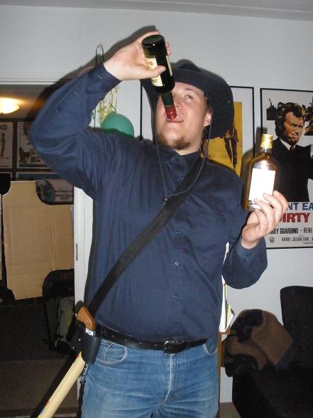 Toimikunnan edustajat päättivät myös jossakin ohikiitävässä uteliaisuuden puuskassaan tehdä kertarysäyksellä tarkentavan selvityksen siitä, kenellä näennäisen autenttisesti saluunan interiööriin solahtaneista vieraista oikein olisi konkreettisella käytännön tasolla ne kaikkein vankimmat lähtötiedot vallitsevasta ajanjaksosta ja virittivät rapuilijoiden kinkkiseksi pähkinäksi pienimuotoisen, kymmenen haastavaa kysymystä käsittävän teemavisailun. Porkkanaksi asetettu viskipullo piti luontevan mallikelpoisesti huolen siitä, ettei karjuilla välähtänyt mielessäkään passata harvinaislaatuista tilaisuutta tallustella kotikonnuille ilmaisilla viinahuljuilla kurkun pohjaa tasaisin määräajoin korventaen. Tavoitellun pääpalkinnon kahmaisi lopulta Sheriffi R-Danger ja mikä häiriintyneintä, täysin käsittämättömällä 8/10-oikein tuloksella. Kaiken kukkuraksi ylimielinen epeli nakkasi voitostaan täysin vakuuttuneena kynän nurkkaan reteästi jo ennen viimeistä kysymystä. Villin lännen arvoitukselliseen mytologiaan voi siis taas liittää uuden mysteerin: oliko kyse silkasta moukan tuurista, rukkasiko nettikännykällä varustautunut ovela lurjus katseiden välttäessä suoran yhteyden kaikkitietävään Wikipediaan vai mahtuuko yhteen jäppiseen todellakin näin paljon pöyristyttävän triviaalia nippelitietoa? Yhtä kaikki, viimeistään palkintolestin tuplaantuessa kahteen, vempula viritti kasvoilleen virneen, joka olisi maireudessaan pakottanut itse Hangon keksinkin nöyryytettynä nurkkaan perinpohjaisiin häpeämisharjoituksiin.