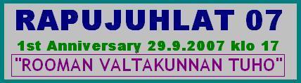 Viileä menestystarina jatkuu! Vuonna 2007 onkin jo syytä kaksinkertaiseen juhlaan, sillä 29.9. repäisemme ilon ylimmilleen ja nostamme maljoja rapujuhlien vivahteikkaalle yksivuotiselle taipaleelle. Teemaksi on valittu tällä kertaa haastavasti "Rooman valtakunnan tuho". Nämä ovat ne syksyn tykeimmät ykköskinkerit, johon kaikki haluaisivat ottaa osaa keinolla ja hinnalla millä hyvänsä, mutta joihin vain harvat ja onnellisten tähtien alla syntyneet lopulta pääsevät.