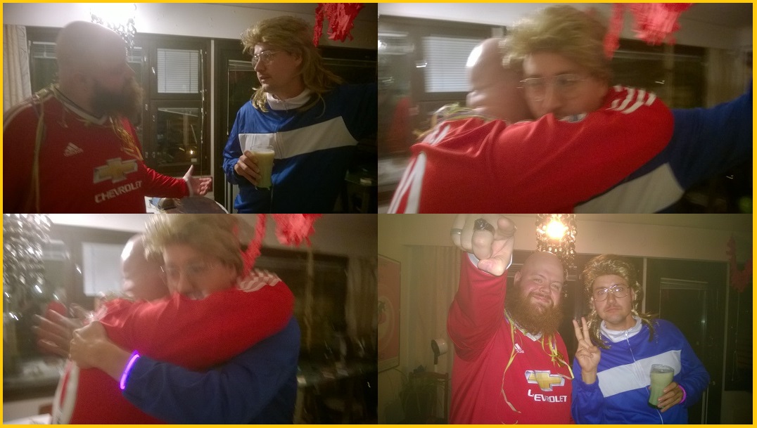 Mikot sika ja viime vuoden kemuissa täyslaidallisen tykittänyt Perkoila fiilistelemässä kilpaa kymmenensien kunniaksi.