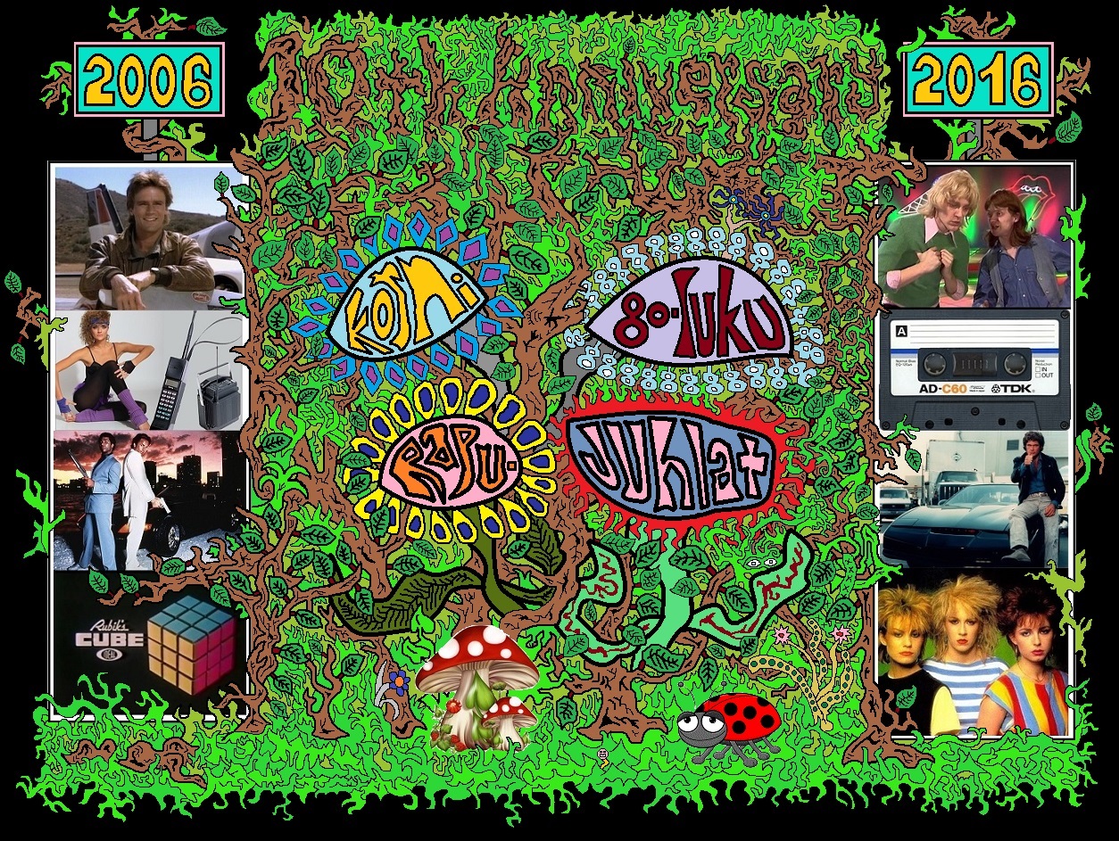Siksipä korskean pyhänä vannottu harras valamme olikin, että hienoisesta romuluisuudestaan huolimatta jopa yllättävänkin reippaiden rapuhumputtelujen joutuisaa varttumista vilkkaaksi, pikkuvanhaksi ja uteliaaksi kymmenvuotiaaksi koltiaiseksi pitäisi muitta mukinoitta kyetä juhlistamaan johonkin vieläkin suuruudenhullumpaan ja mahtipontisempaan metodiin tarrautuen ja tarjota ikäänkuin siinä sivussa jälleen kerran periaatteessa jo täysin piloillehyysätyille rapuklaanilaisille freesisti uudenlainen ja vuorenvarmasti ennenkokematon merkintä jo monenlaista jänskää näiden bileiden saralla takuulla sisältävään, kutkuttavasti yhä entisestään paisuvaan, messevän moniulotteiseen kokemuspankkiin. Rytkäytimme siksi paikoin paahteisen helteiseksikin yltyneen kesäkauden saatossa koko konferenssihallin patioalueen kolossaalisella tavalla uudistettuun kuosiin aivan sitä vihoviimeistä, kehitystä vastaan turhaan hangoitellutta senttimetriä myöten.